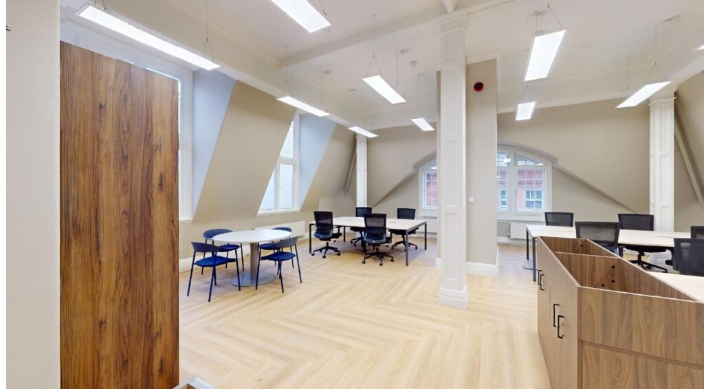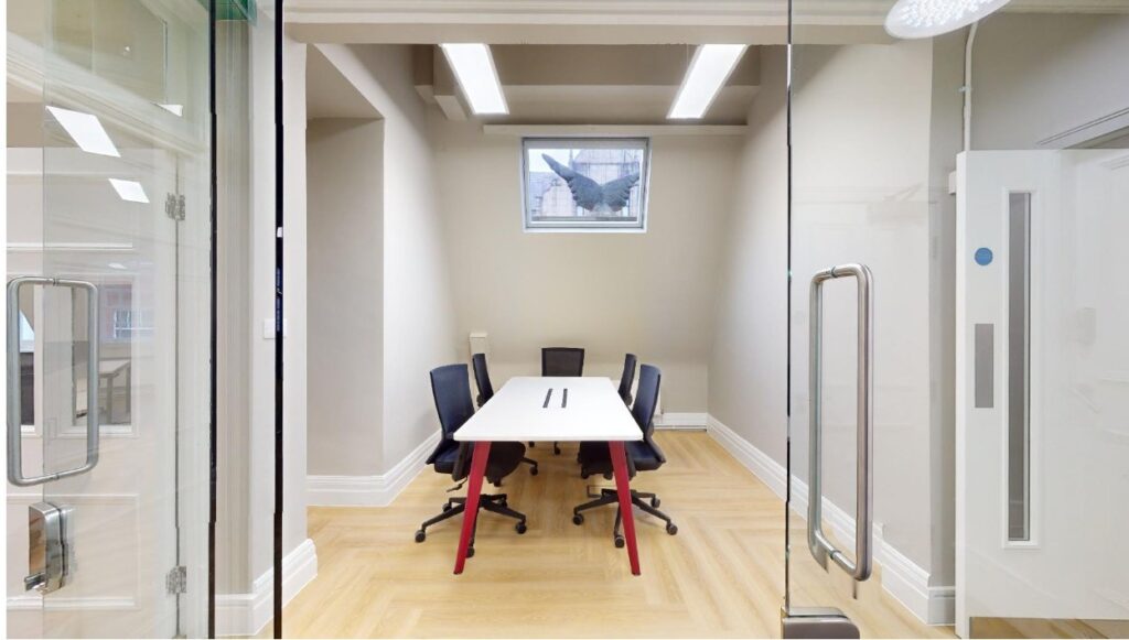 Built in 1911, Eagle House offers a blend of modern, sophisticated workspace and historic character. With a continuous balcony running across the entire front of the building, complete with wrought-iron ornate railings and carved stone details, this Edwardian Baroque architectural gem has been renovated with meticulous attention to detail and is now ready to welcome its next generation of occupants. Three distinct suites are available at Eagle House, either individually or combined for larger or growing companies. Each features generous 1.2m wide desks, at-desk high-speed connectivity, meeting space, kitchenettes with integrated appliances and a host of preserved Grade-II features for you to discover. The suites at Eagle House can be let individually, or are available to Let in combination, with a total capacity potential of 75 desks, five private meeting rooms, three sound-proof call booths, tea points on every floor and an open-plan collaboration space.