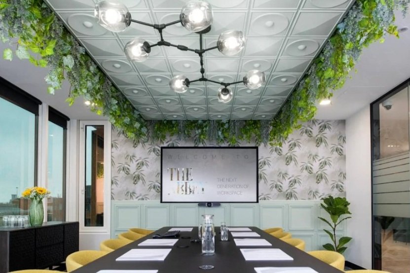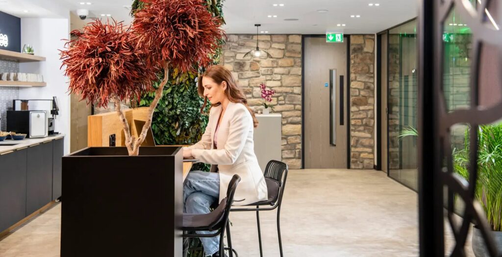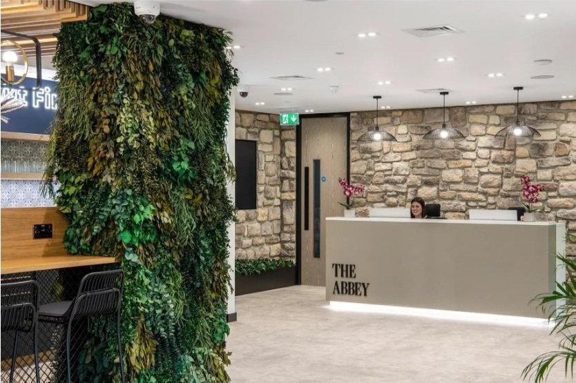 The Abbey’s a design and tech-led office makes use of heritage colours, neon signs and a healthy amount of plants. There’s fresh coffee, wellness pods, a concierge — and even robots to deliver your lunch.