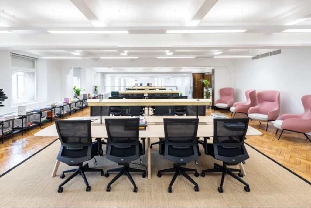 The coworking space in The Hanover Building is a vibrant extension of everything NOMA has to offer: innovation, community, and a thriving business scene. Fresh ideas come easily in these light-filled lounges and conference rooms, while productivity flows in abundance in sleek private offices. After work, head to the Pilcrow Pub for drinks with the team, or attend a local art or culinary event hosted by NOMA. Blending historic architecture with modern amenities, this iconic building is a draw for potential clients and new team members.